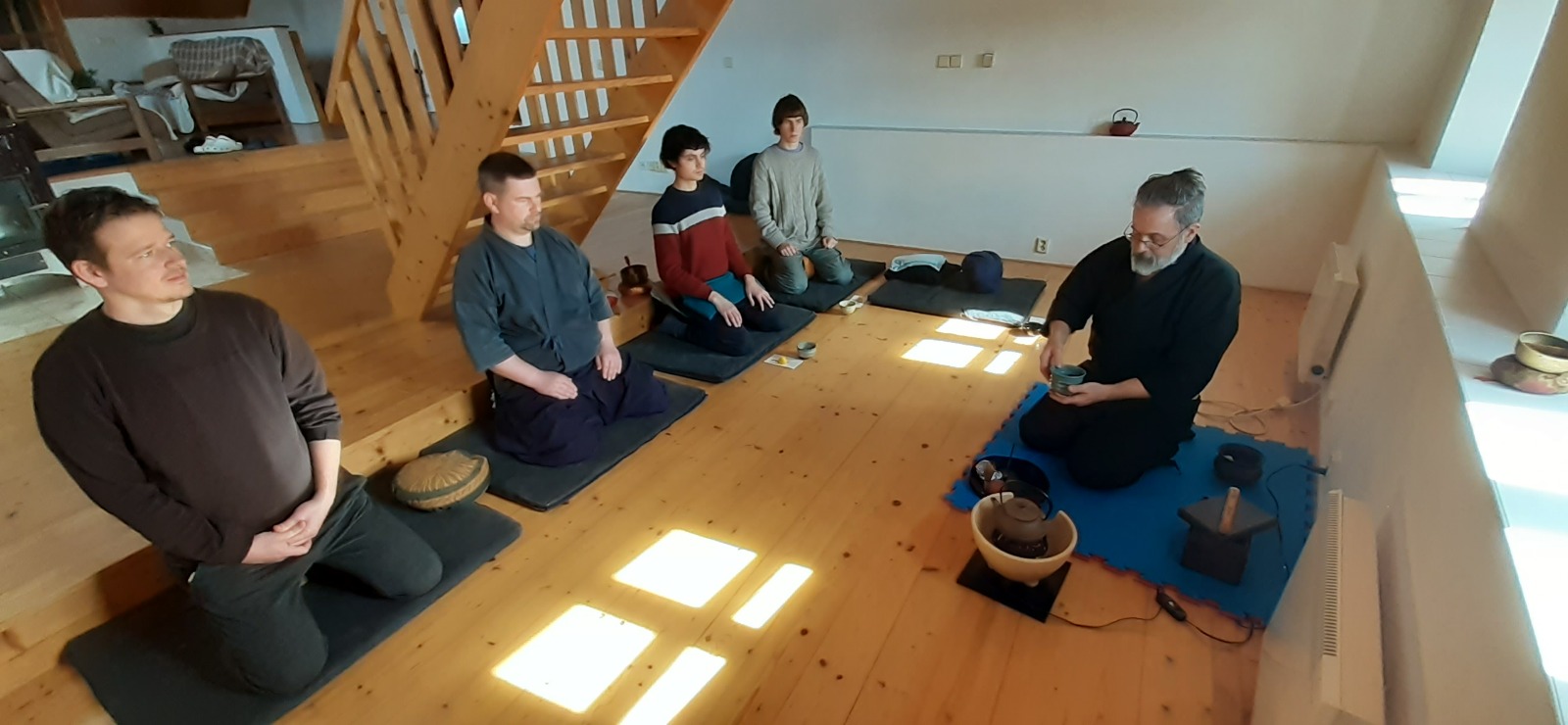 - Na zazen choďte v 6:20 (19:50), můžete se pak v klidu převléknout, zeptat se na věci spojené s praxí a vypít čaj.
