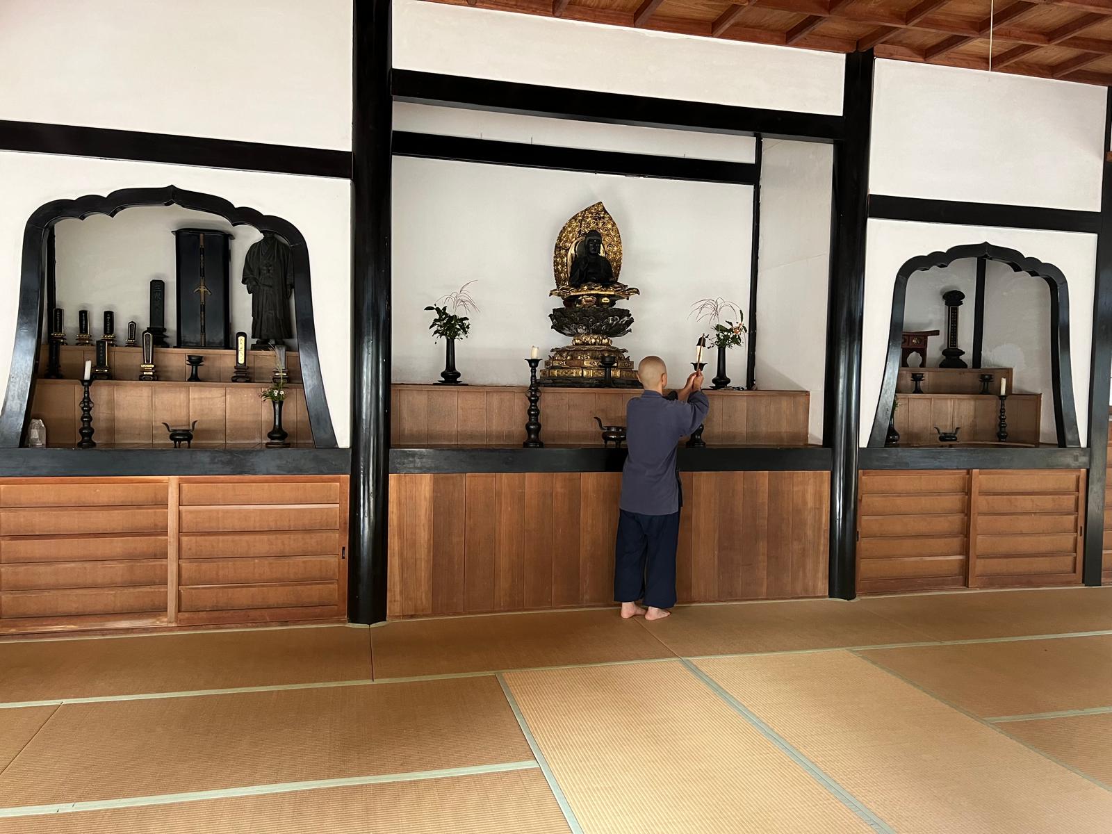 - V dódžó nechoďte před oltářem, s výjimkou kinhinu (meditace v chůzi).