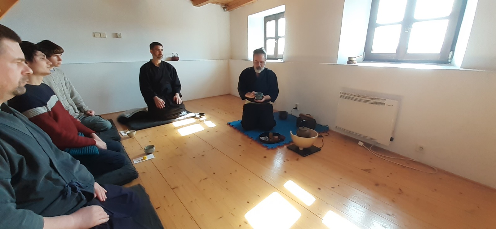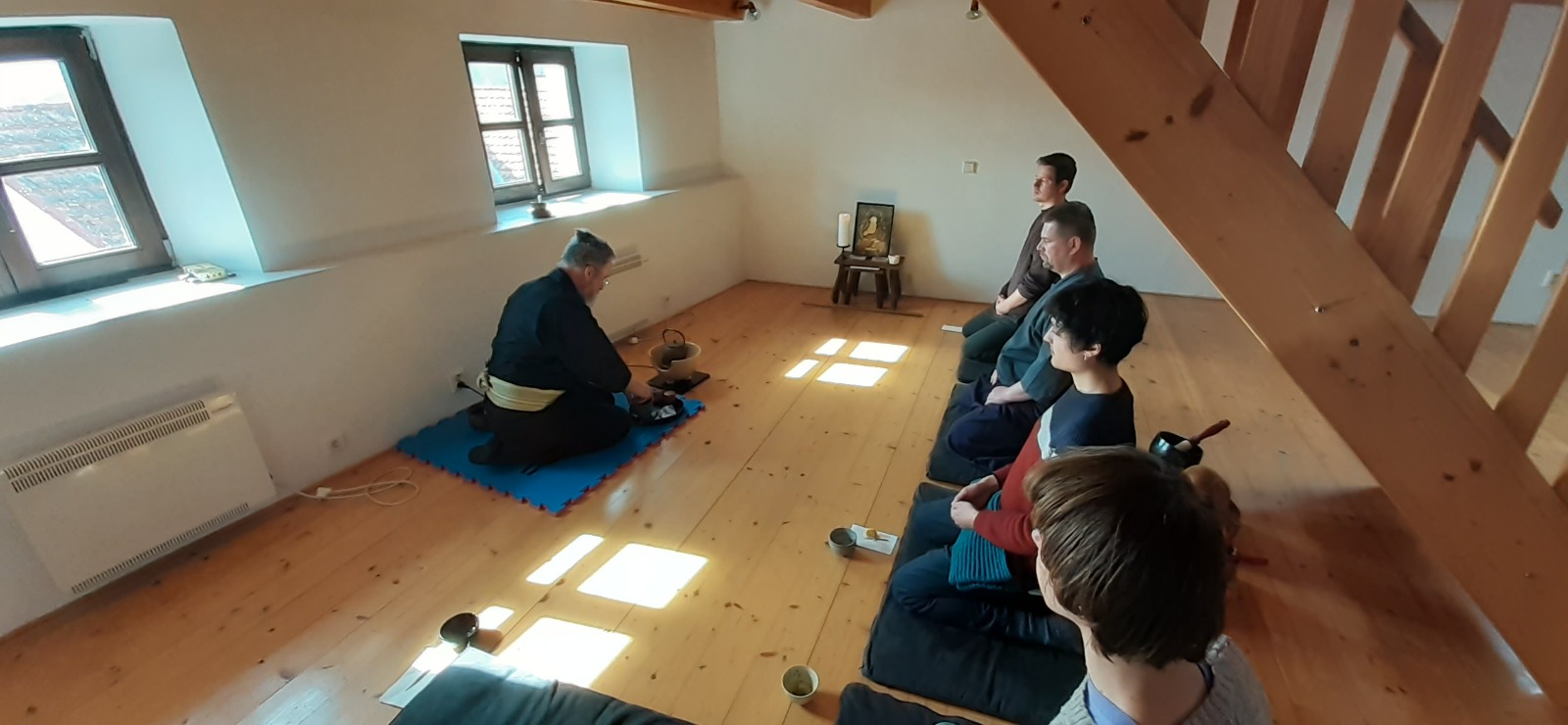 - Na zazen choďte v 6:20 (19:50), můžete se pak v klidu převléknout, zeptat se na věci spojené s praxí a vypít čaj.